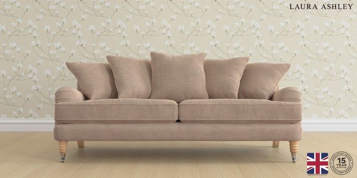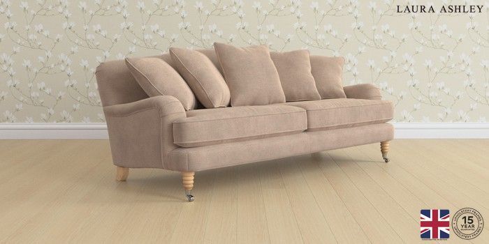 6.12.1 Buy Lynden Scatter Back by Laura Ashley 3 Seater Sofa Ailsworth Mink Natural Ornate Chrome Castor - Light Oak from the Next UK online shop Click here to use our accessible website