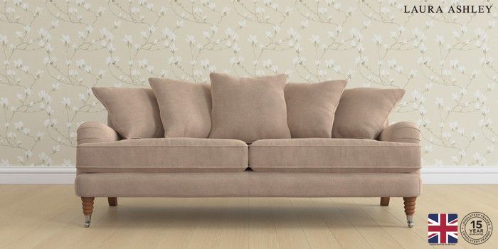 6.12.1 Buy Lynden Scatter Back by Laura Ashley 3 Seater Sofa Ailsworth Mink Natural Ornate Chrome Castor - Teak from the Next UK online shop Click here to use our accessible website