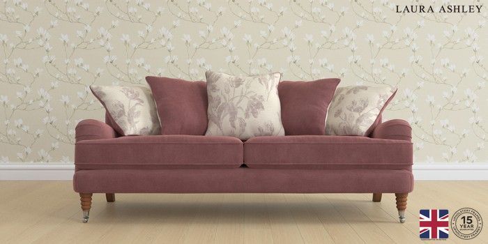 6.12.1 Buy Lynden Scatter Back by Laura Ashley 3 Seater Sofa Gosford Floral Combo Plum Purple Ornate Chrome Castor - Teak from the Next UK online shop Click here to use our accessible website