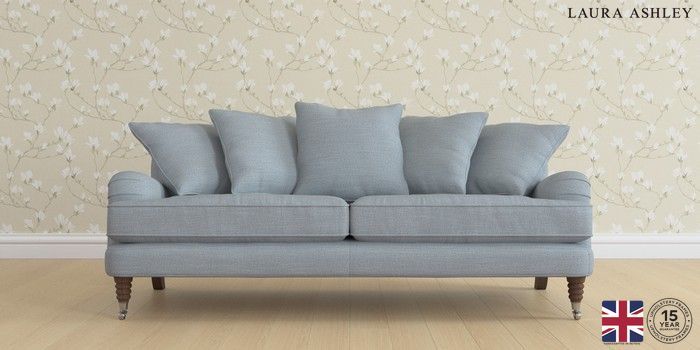 6.12.1 Buy Lynden Scatter Back by Laura Ashley 3 Seater Sofa Kinsham Seaspray Blue Ornate Chrome Castor - Chestnut from the Next UK online shop Click here to use our accessible website