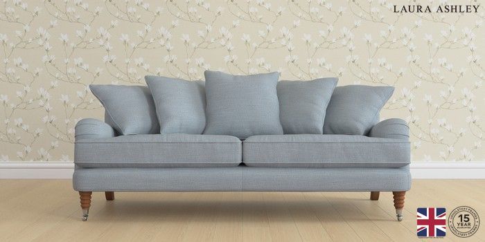6.12.1 Buy Lynden Scatter Back by Laura Ashley 3 Seater Sofa Kinsham Seaspray Blue Ornate Chrome Castor - Teak from the Next UK online shop Click here to use our accessible website