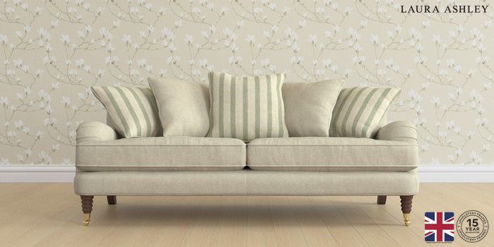 6.12.1 Buy Lynden Scatter Back by Laura Ashley 3 Seater Sofa Kinsham Stripe Combo Natural and Hedgerow Green Ornate Brass Castor - Chestnut from the Next UK online shop Click here to use our accessible website
