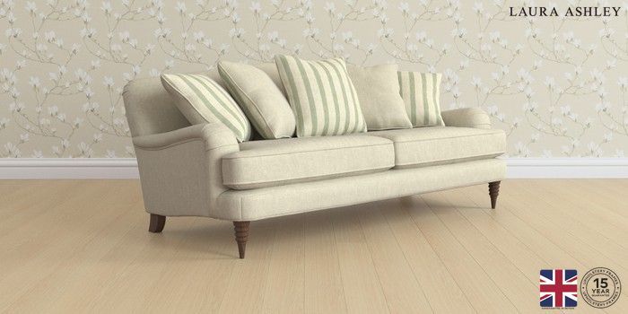 6.12.1 Buy Lynden Scatter Back by Laura Ashley 3 Seater Sofa Kinsham Stripe Combo Natural and Hedgerow Green Ornate Turned - Chestnut from the Next UK online shop Click here to use our accessible website