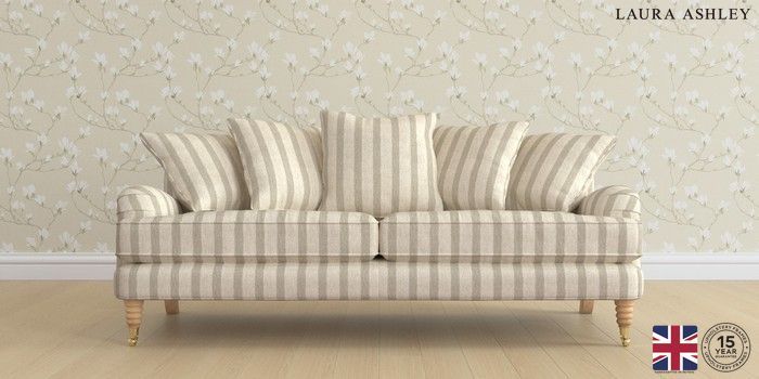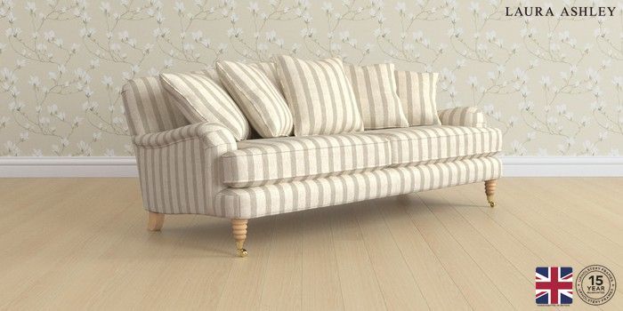 6.12.1 Buy Lynden Scatter Back by Laura Ashley 3 Seater Sofa Kinsham Stripe Natural Ornate Brass Castor - Light Oak from the Next UK online shop Click here to use our accessible website