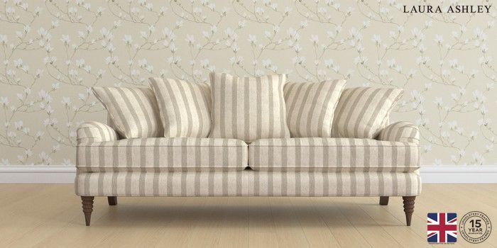 6.12.1 Buy Lynden Scatter Back by Laura Ashley 3 Seater Sofa Kinsham Stripe Natural Ornate Turned - Chestnut from the Next UK online shop Click here to use our accessible website
