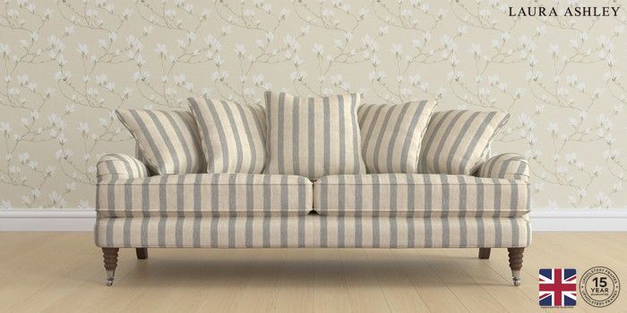 6.12.1 Buy Lynden Scatter Back by Laura Ashley 3 Seater Sofa Kinsham Stripe Seaspray Blue Ornate Chrome Castor - Chestnut from the Next UK online shop Click here to use our accessible website