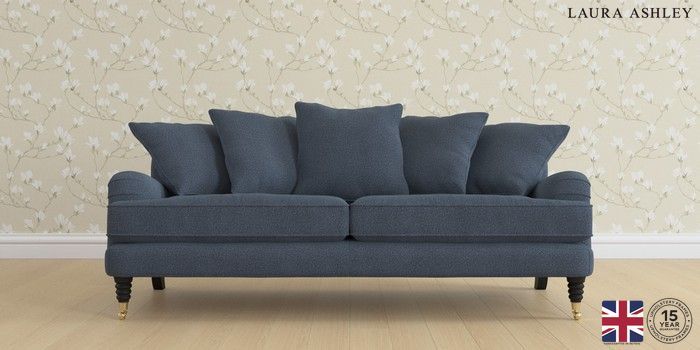 6.12.1 Buy Lynden Scatter Back by Laura Ashley 3 Seater Sofa Lundar Chenille Navy Blue Ornate Brass Castor - Black from the Next UK online shop Click here to use our accessible website