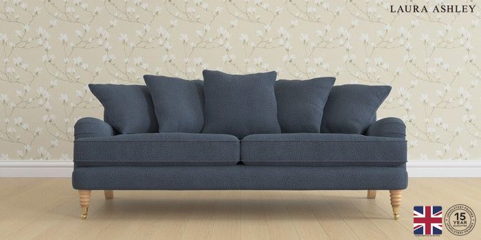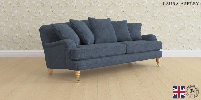 6.12.1 Buy Lynden Scatter Back by Laura Ashley 3 Seater Sofa Lundar Chenille Navy Blue Ornate Brass Castor - Light Oak from the Next UK online shop Click here to use our accessible website