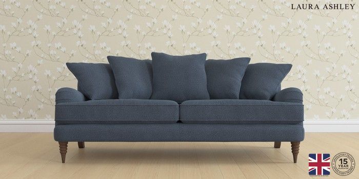 6.12.1 Buy Lynden Scatter Back by Laura Ashley 3 Seater Sofa Lundar Chenille Navy Blue Ornate Turned - Chestnut from the Next UK online shop Click here to use our accessible website