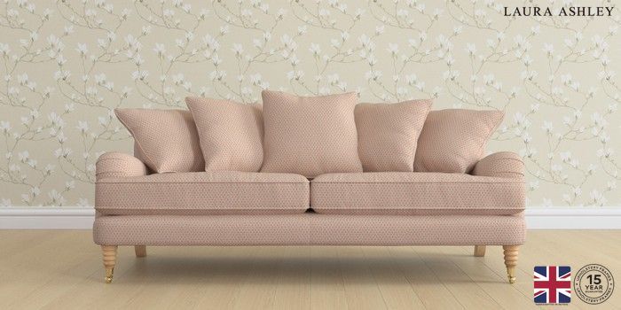 6.12.1 Buy Lynden Scatter Back by Laura Ashley 3 Seater Sofa Melbreak Geo Chalk Pink Ornate Brass Castor - Light Oak from the Next UK online shop Click here to use our accessible website