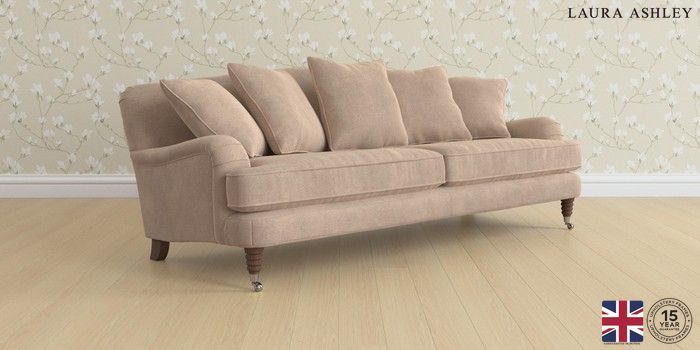 6.12.1 Buy Lynden Scatter Back by Laura Ashley 4 Seater Sofa Ailsworth Mink Natural Ornate Chrome Castor - Chestnut from the Next UK online shop Click here to use our accessible website
