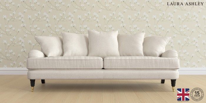 7.2.6 Buy Lynden Scatter Back by Laura Ashley 4 Seater Sofa Anneliese Oyster Natural Ornate Brass Castor - Black from the Next UK online shop Click here to use our accessible website