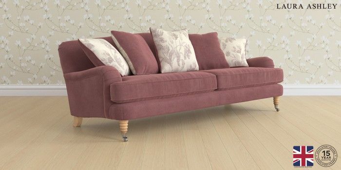 6.12.1 Buy Lynden Scatter Back by Laura Ashley 4 Seater Sofa Gosford Floral Combo Plum Purple Ornate Chrome Castor - Light Oak from the Next UK online shop Click here to use our accessible website