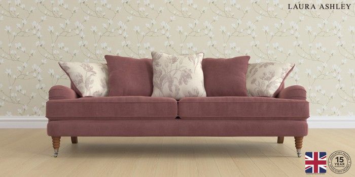 6.12.1 Buy Lynden Scatter Back by Laura Ashley 4 Seater Sofa Gosford Floral Combo Plum Purple Ornate Chrome Castor - Teak from the Next UK online shop Click here to use our accessible website