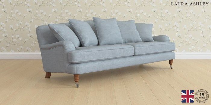 6.12.1 Buy Lynden Scatter Back by Laura Ashley 4 Seater Sofa Kinsham Seaspray Blue Ornate Chrome Castor - Teak from the Next UK online shop Click here to use our accessible website