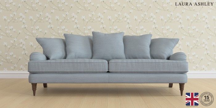 6.12.1 Buy Lynden Scatter Back by Laura Ashley 4 Seater Sofa Kinsham Seaspray Blue Ornate Turned - Chestnut from the Next UK online shop Click here to use our accessible website