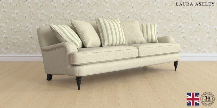6.12.1 Buy Lynden Scatter Back by Laura Ashley 4 Seater Sofa Kinsham Stripe Combo Natural and Hedgerow Green Ornate Turned - Black from the Next UK online shop Click here to use our accessible website
