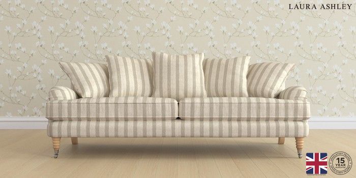6.12.1 Buy Lynden Scatter Back by Laura Ashley 4 Seater Sofa Kinsham Stripe Natural Ornate Chrome Castor - Light Oak from the Next UK online shop Click here to use our accessible website