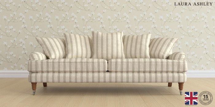 6.12.1 Buy Lynden Scatter Back by Laura Ashley 4 Seater Sofa Kinsham Stripe Natural Ornate Chrome Castor - Teak from the Next UK online shop Click here to use our accessible website