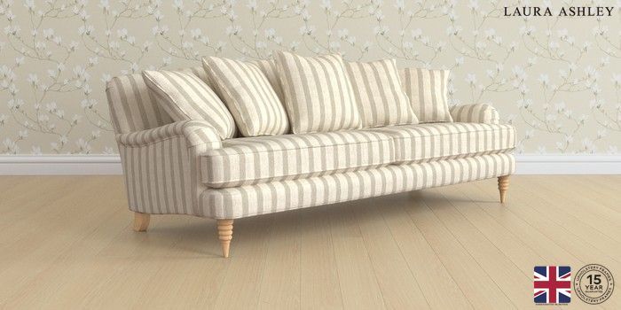 6.12.1 Buy Lynden Scatter Back by Laura Ashley 4 Seater Sofa Kinsham Stripe Natural Ornate Turned - Light Oak from the Next UK online shop Click here to use our accessible website