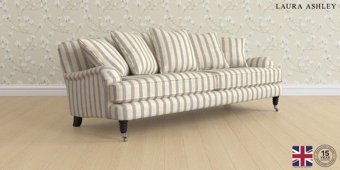 6.12.1 Buy Lynden Scatter Back by Laura Ashley 4 Seater Sofa Kinsham Stripe Seaspray Blue Ornate Chrome Castor - Black from the Next UK online shop Click here to use our accessible website
