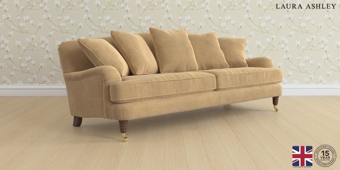 6.12.1 Buy Lynden Scatter Back by Laura Ashley 4 Seater Sofa Lundar Chenille Caramel Natural Ornate Brass Castor - Chestnut from the Next UK online shop Click here to use our accessible website