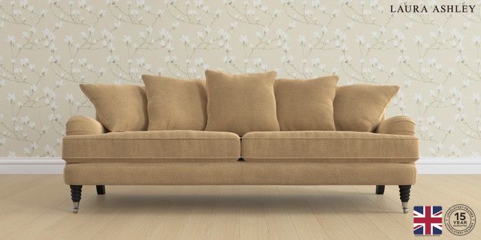 6.12.1 Buy Lynden Scatter Back by Laura Ashley 4 Seater Sofa Lundar Chenille Caramel Natural Ornate Chrome Castor - Black from the Next UK online shop Click here to use our accessible website