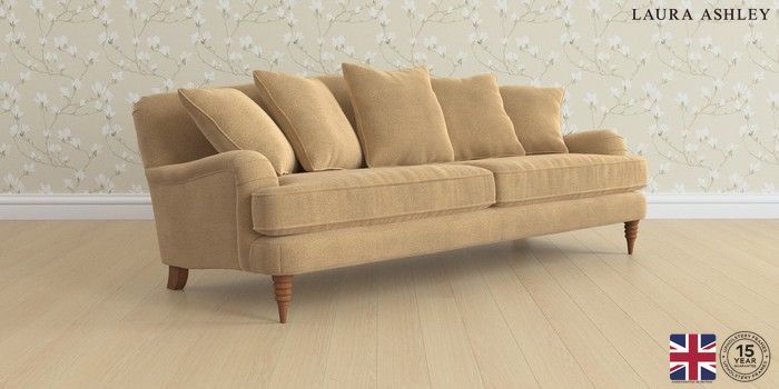 6.12.1 Buy Lynden Scatter Back by Laura Ashley 4 Seater Sofa Lundar Chenille Caramel Natural Ornate Turned - Teak from the Next UK online shop Click here to use our accessible website