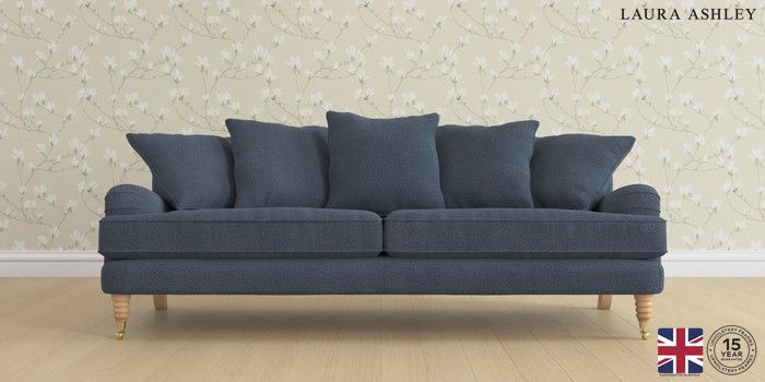 6.12.1 Buy Lynden Scatter Back by Laura Ashley 4 Seater Sofa Lundar Chenille Navy Blue Ornate Brass Castor - Light Oak from the Next UK online shop Click here to use our accessible website