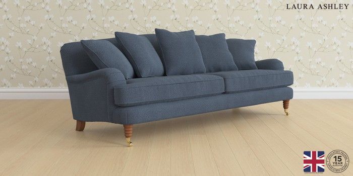 6.12.1 Buy Lynden Scatter Back by Laura Ashley 4 Seater Sofa Lundar Chenille Navy Blue Ornate Brass Castor - Teak from the Next UK online shop Click here to use our accessible website