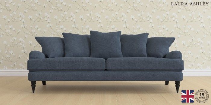 6.12.1 Buy Lynden Scatter Back by Laura Ashley 4 Seater Sofa Lundar Chenille Navy Blue Ornate Turned - Black from the Next UK online shop Click here to use our accessible website