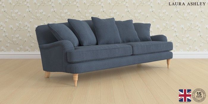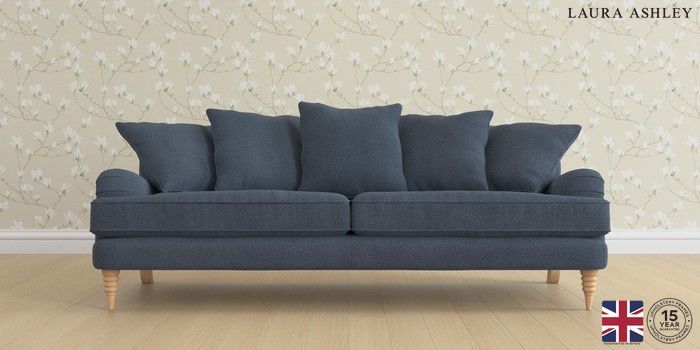 6.12.1 Buy Lynden Scatter Back by Laura Ashley 4 Seater Sofa Lundar Chenille Navy Blue Ornate Turned - Light Oak from the Next UK online shop Click here to use our accessible website