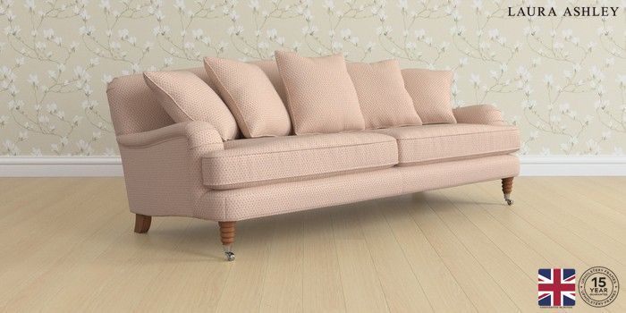 6.12.1 Buy Lynden Scatter Back by Laura Ashley 4 Seater Sofa Melbreak Geo Chalk Pink Ornate Chrome Castor - Teak from the Next UK online shop Click here to use our accessible website