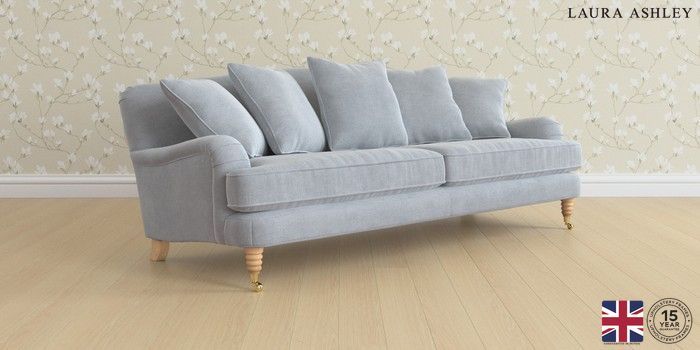 6.12.1 Buy Lynden Scatter Back by Laura Ashley 4 Seater Sofa Peyton Powder Blue Ornate Brass Castor - Light Oak from the Next UK online shop Click here to use our accessible website