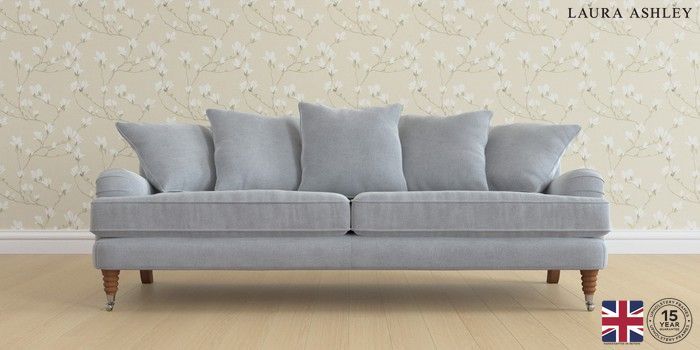 6.12.1 Buy Lynden Scatter Back by Laura Ashley 4 Seater Sofa Peyton Powder Blue Ornate Chrome Castor - Teak from the Next UK online shop Click here to use our accessible website