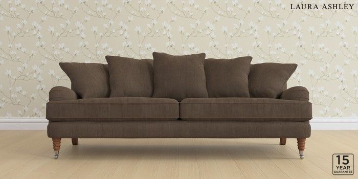 6.12.1 Buy Lynden Scatter Back by Laura Ashley 4 Seater Sofa Sinclair Cord Chocolate Brown Ornate Chrome Castor - Teak from the Next UK online shop Click here to use our accessible website