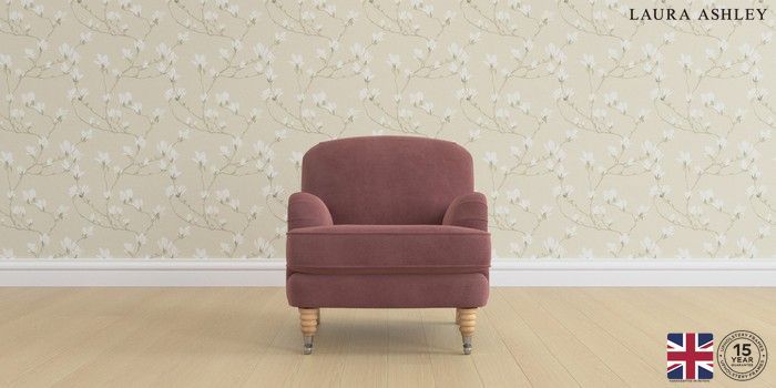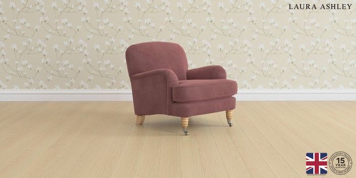 6.12.1 Buy Lynden Scatter Back by Laura Ashley Armchair Gosford Floral Combo Plum Purple Ornate Chrome Castor - Light Oak from the Next UK online shop Click here to use our accessible website