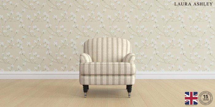 6.12.1 Buy Lynden Scatter Back by Laura Ashley Armchair Kinsham Stripe Natural Ornate Chrome Castor - Black from the Next UK online shop Click here to use our accessible website