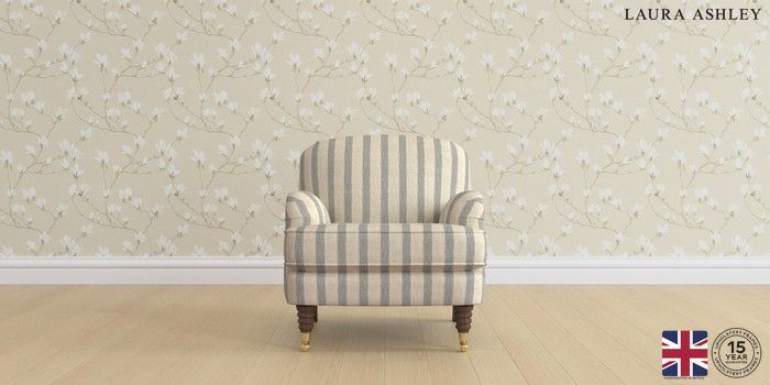 6.12.1 Buy Lynden Scatter Back by Laura Ashley Armchair Kinsham Stripe Seaspray Blue Ornate Brass Castor - Chestnut from the Next UK online shop Click here to use our accessible website