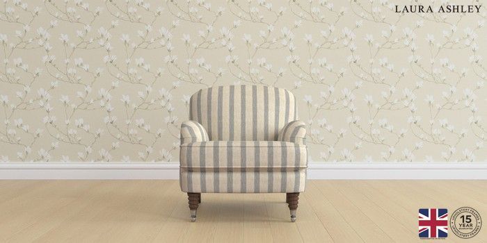 6.12.1 Buy Lynden Scatter Back by Laura Ashley Armchair Kinsham Stripe Seaspray Blue Ornate Chrome Castor - Chestnut from the Next UK online shop Click here to use our accessible website