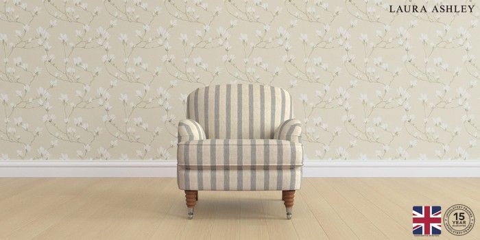 6.12.1 Buy Lynden Scatter Back by Laura Ashley Armchair Kinsham Stripe Seaspray Blue Ornate Chrome Castor - Teak from the Next UK online shop Click here to use our accessible website