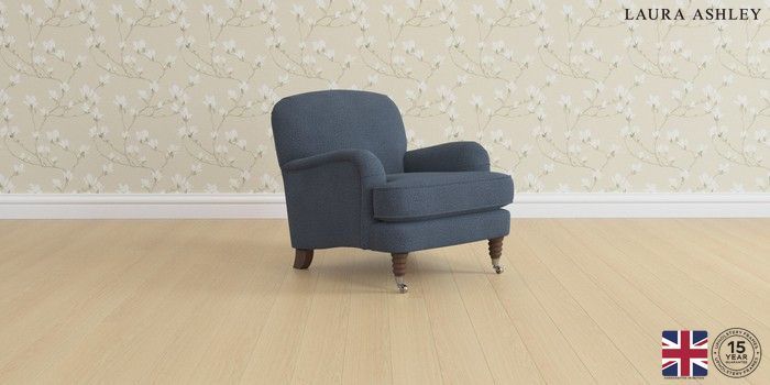 6.12.1 Buy Lynden Scatter Back by Laura Ashley Armchair Lundar Chenille Navy Blue Ornate Chrome Castor - Chestnut from the Next UK online shop Click here to use our accessible website