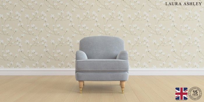 6.12.1 Buy Lynden Scatter Back by Laura Ashley Armchair Peyton Powder Blue Ornate Brass Castor - Light Oak from the Next UK online shop Click here to use our accessible website