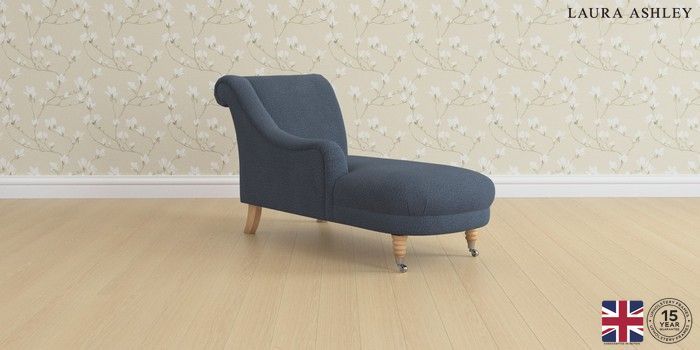 6.12.1 Buy Lynden Scatter Back by Laura Ashley Chaise Longue Left Hand Lundar Chenille Navy Blue Ornate Chrome Castor - Light Oak from the Next UK online shop Click here to use our accessible website