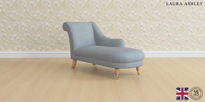 6.12.1 Buy Lynden Scatter Back by Laura Ashley Chaise Longue Right Hand Kinsham Seaspray Blue Ornate Brass Castor - Light Oak from the Next UK online shop Click here to use our accessible website