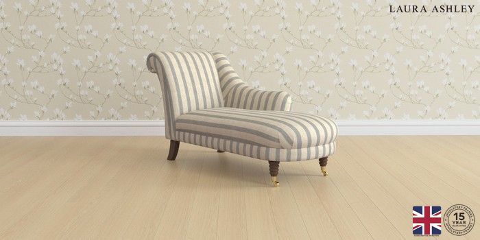 6.12.1 Buy Lynden Scatter Back by Laura Ashley Chaise Longue Right Hand Kinsham Stripe Seaspray Blue Ornate Brass Castor - Chestnut from the Next UK online shop Click here to use our accessible website