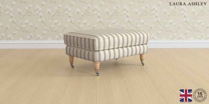 6.12.1 Buy Lynden Scatter Back by Laura Ashley Footstool Kinsham Stripe Seaspray Blue Ornate Chrome Castor - Light Oak from the Next UK online shop Click here to use our accessible website