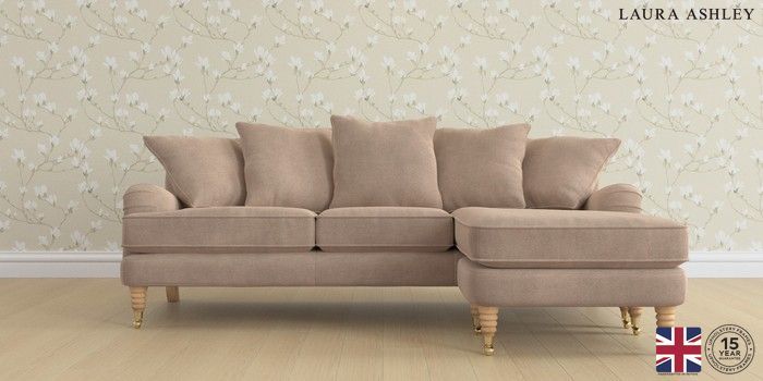 6.12.1 Buy Lynden Scatter Back by Laura Ashley Medium Sofa Chaise - Universal Ailsworth Mink Natural Ornate Brass Castor - Light Oak from the Next UK online shop Click here to use our accessible website