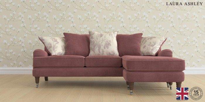 6.12.1 Buy Lynden Scatter Back by Laura Ashley Medium Sofa Chaise - Universal Gosford Floral Combo Plum Purple Ornate Chrome Castor - Chestnut from the Next UK online shop Click here to use our accessible website