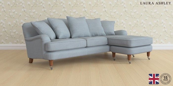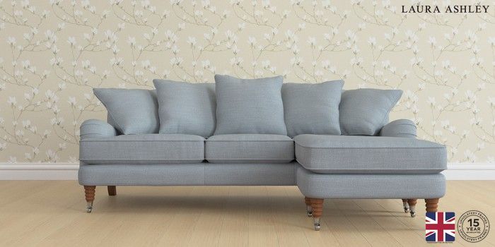 6.12.1 Buy Lynden Scatter Back by Laura Ashley Medium Sofa Chaise - Universal Kinsham Seaspray Blue Ornate Chrome Castor - Teak from the Next UK online shop Click here to use our accessible website